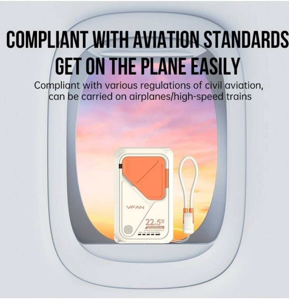 باور بانك VFAN بسعة 10000 مللي أمبير/ساعة مع كابل، شحن سريع 22.5 واط، شحن لاسلكي 15 واط،