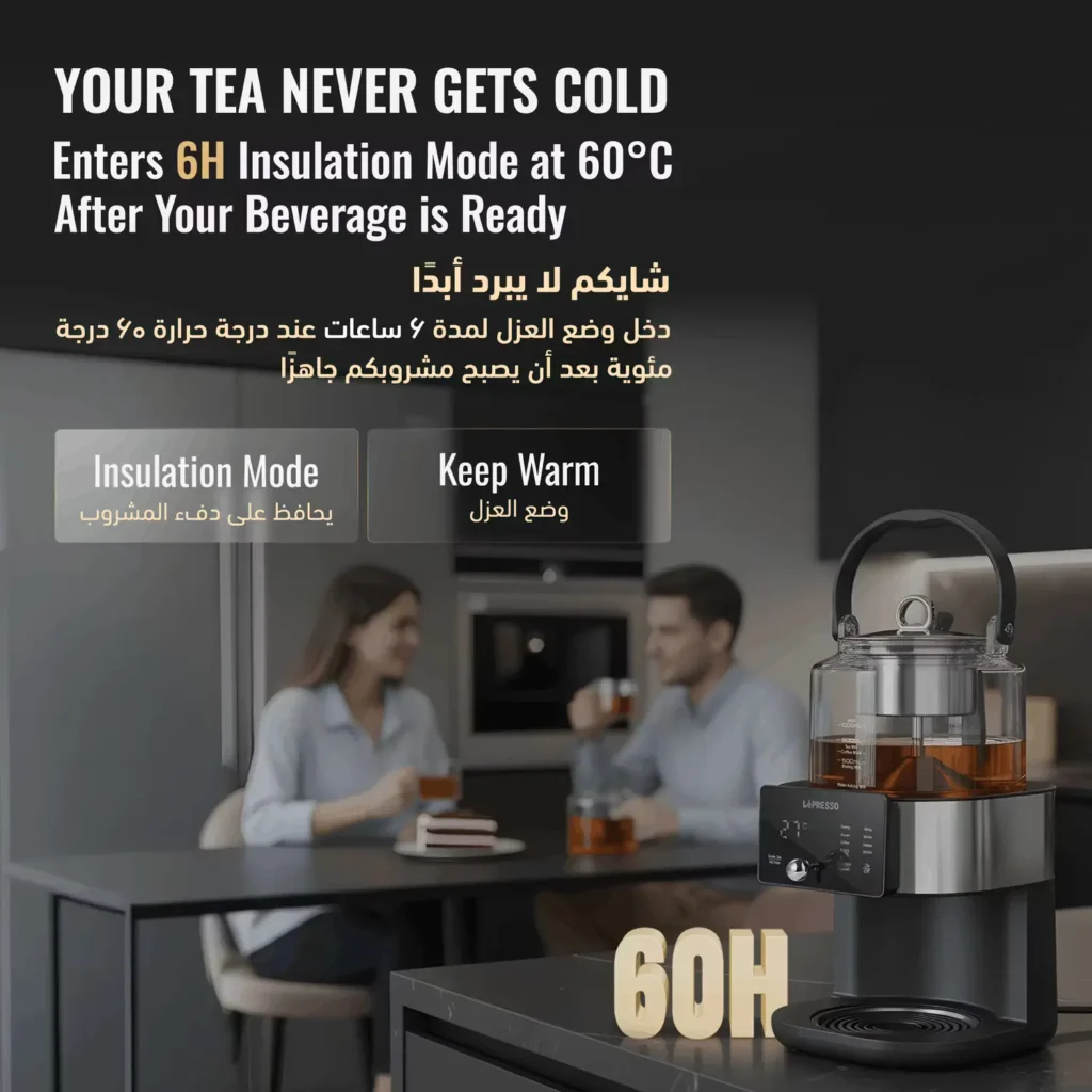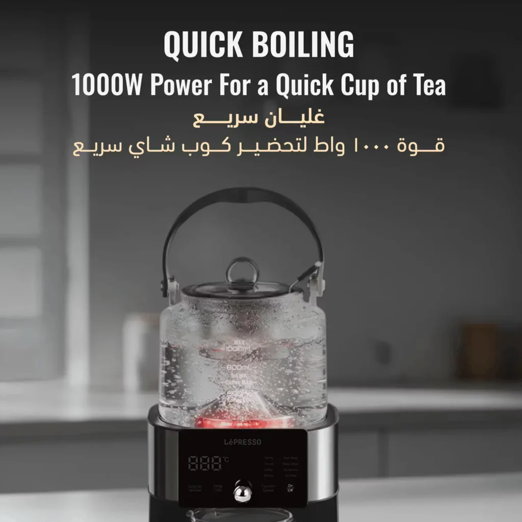 ✔ أداء قوي بقدرة 1000 واط – تحضير سريع وفعال للشاي والقهوة.