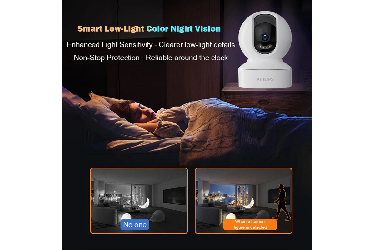 كاميرا مراقبة ذكية من فيليبس بزاوية 360 درجة – عرض عن بُعد، صوت ثنائي الاتجاه، كشف الأشخاص، رؤية ليلية، وإمكانية وصول متعددة المستخدمين