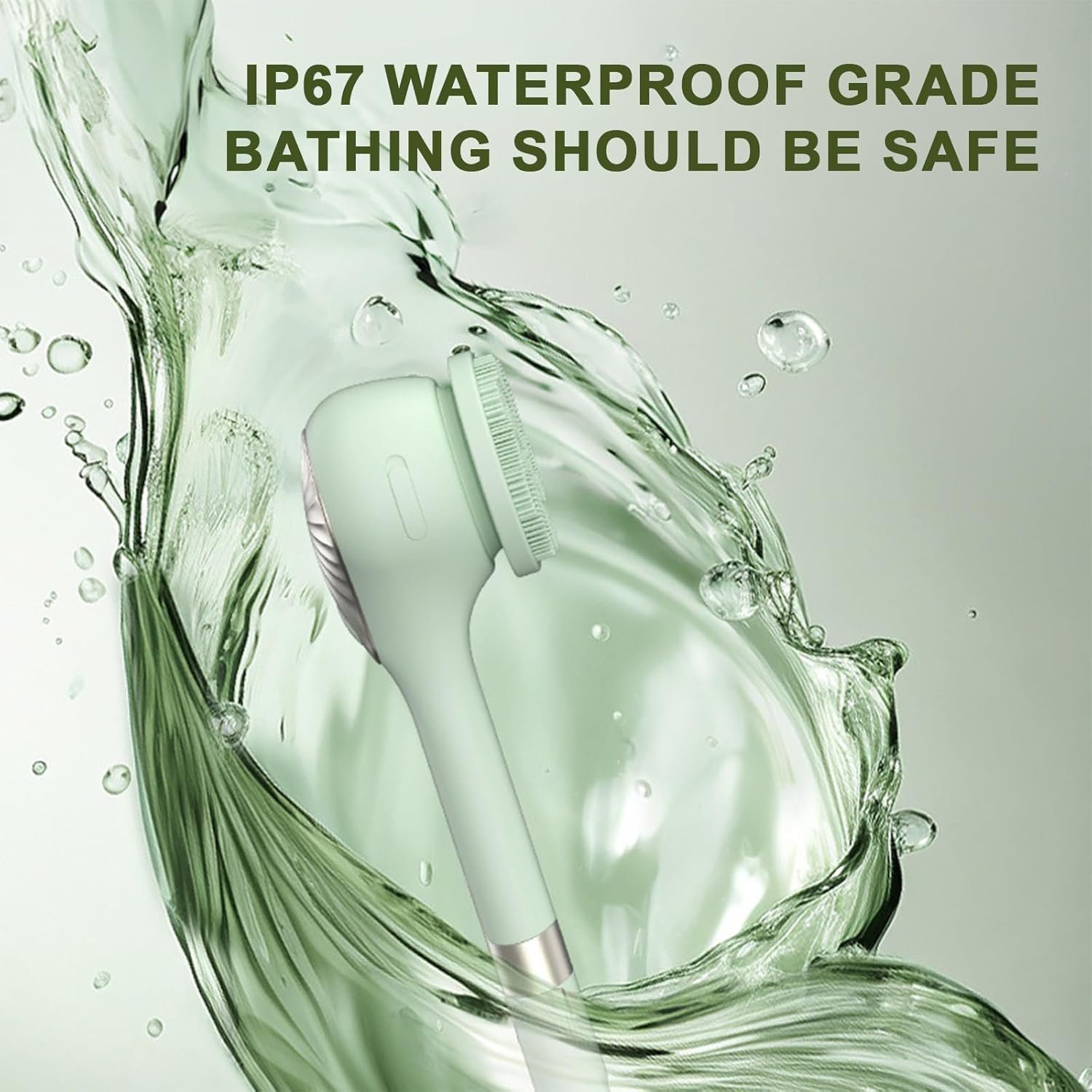 Electric Waterproof Bath Body Brush – 360° Rotating Long Handle Scrubber with 3 Brush Heads